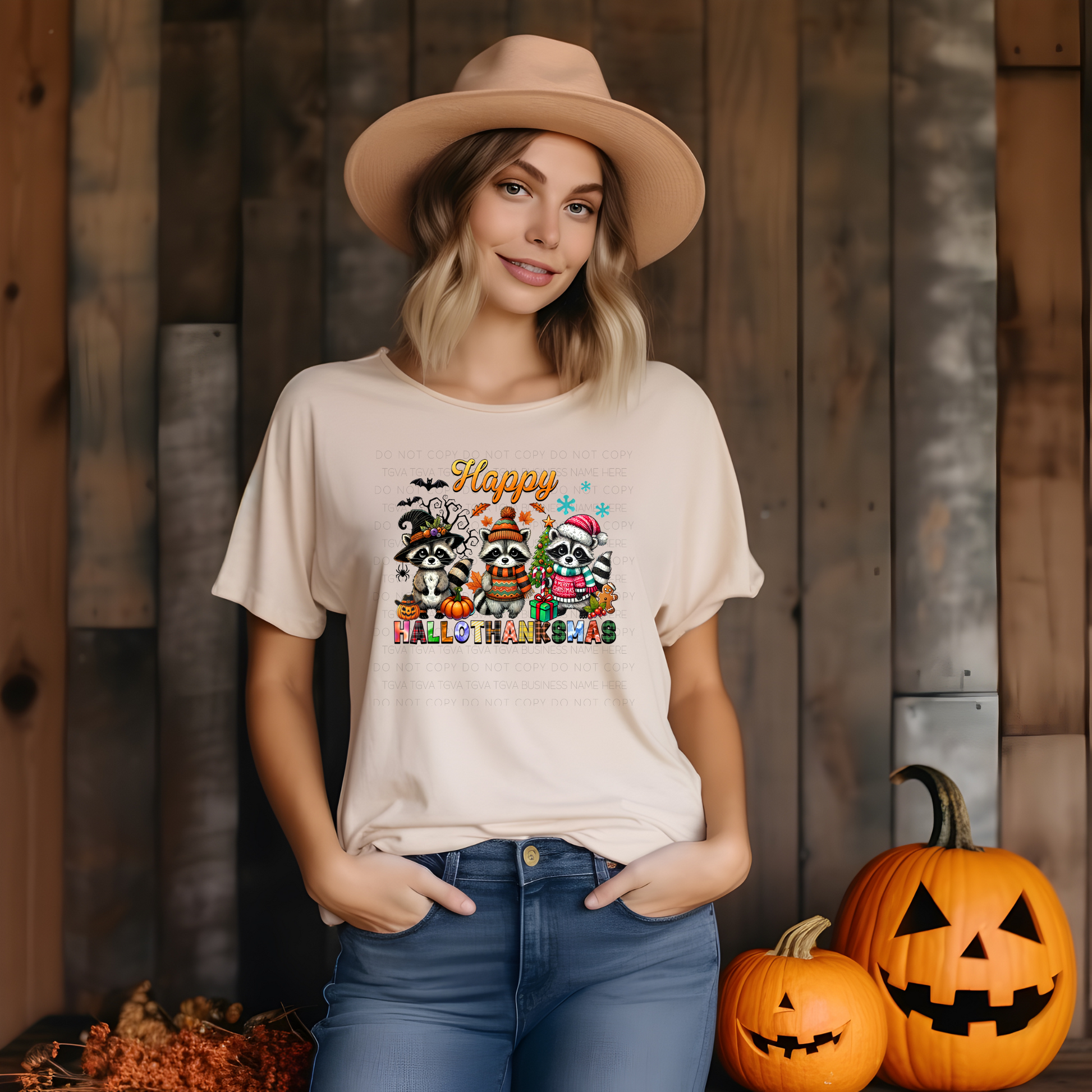 DTF TRANSFER Happy Hallothanksmas (Raccoons)