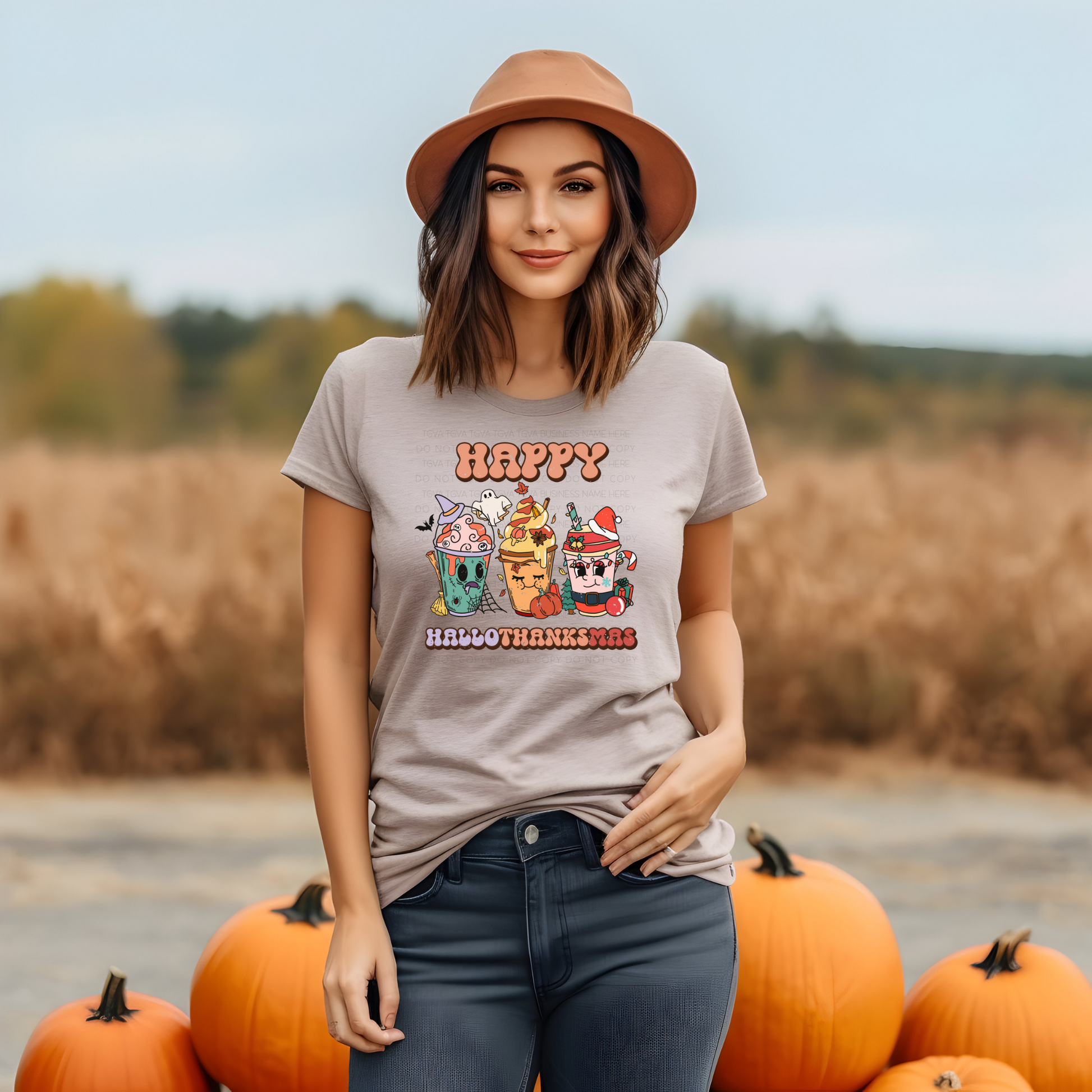 DTF TRANSFER Happy Hallothanksmas (Retro Drinks)