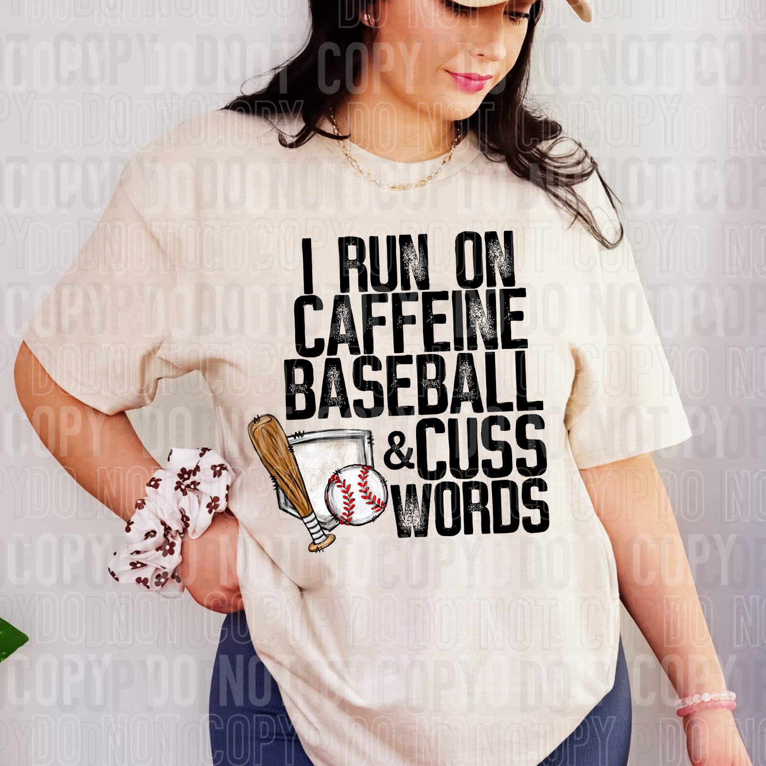 DTF TRANSFER I Run On Caffeine Baseball & Cuss Words